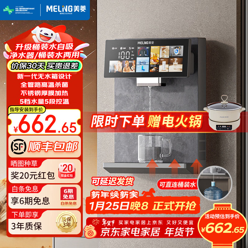 美菱(MeiLing)管线机无水箱可接桶装水家用净水器伴侣加热直饮一体机大动力自吸全通量适配壁挂式餐边柜 自行安装【升级直连桶装水】大动力自吸全管路高温杀菌