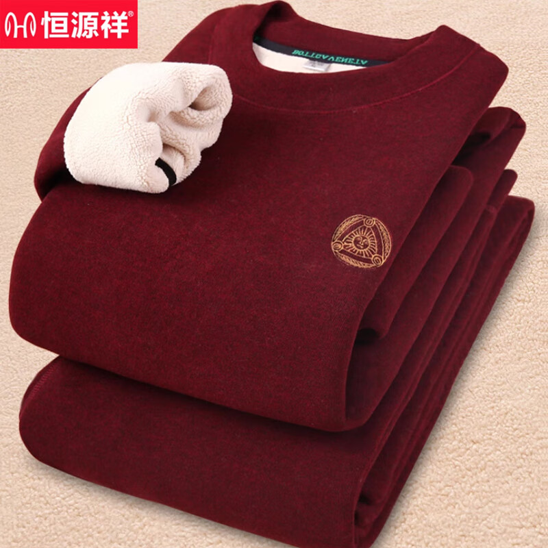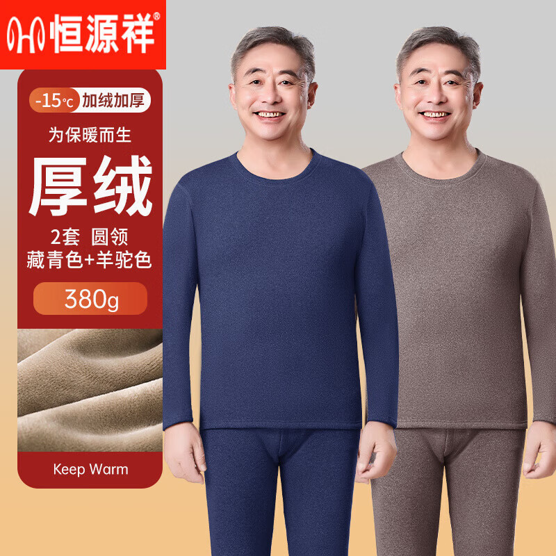 恒源祥保暖裤男加绒加厚高腰护膝修身显瘦打底裤中老年秋裤一体棉毛裤 藏青色(480克)加厚加长护膝 XL 建议145-156斤