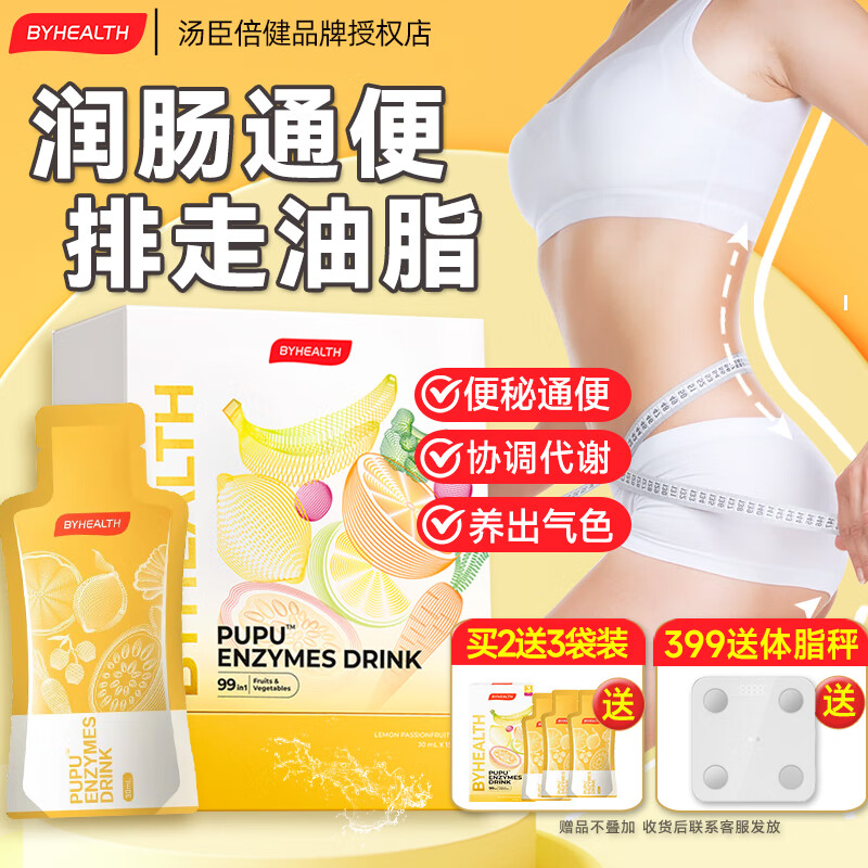 BYHEALTH汤臣倍健酵素pupu饮清肠通便秘膳食纤维西梅汁美白抗氧芦荟促代谢 果蔬酵素 15袋*1盒 【排宿便】