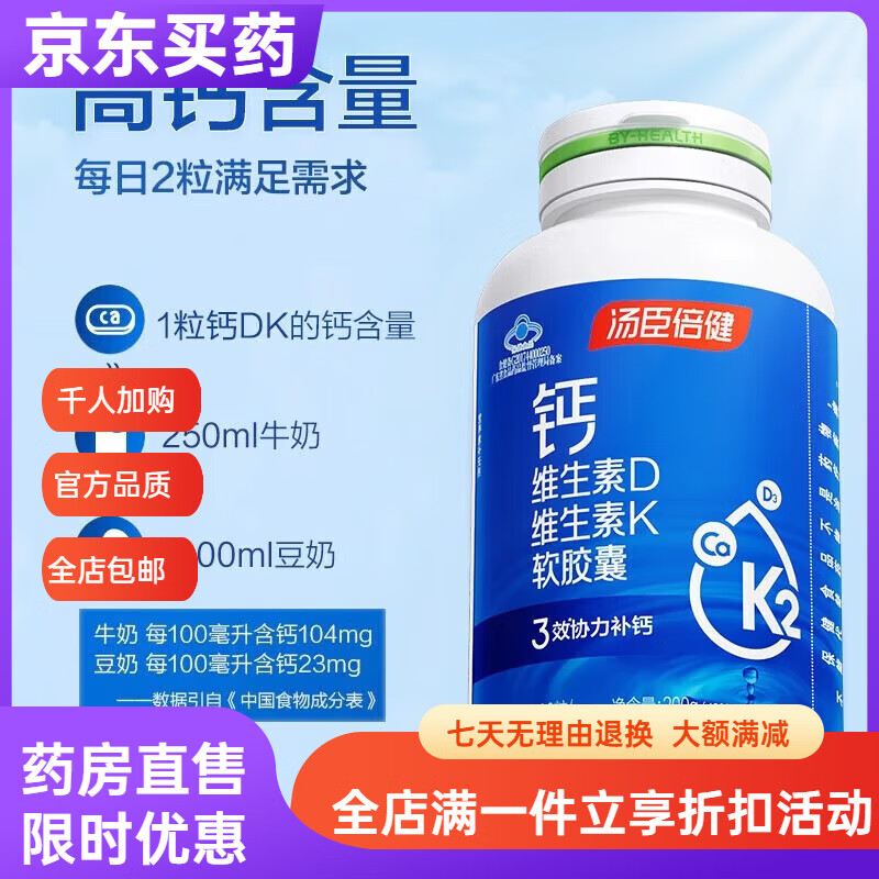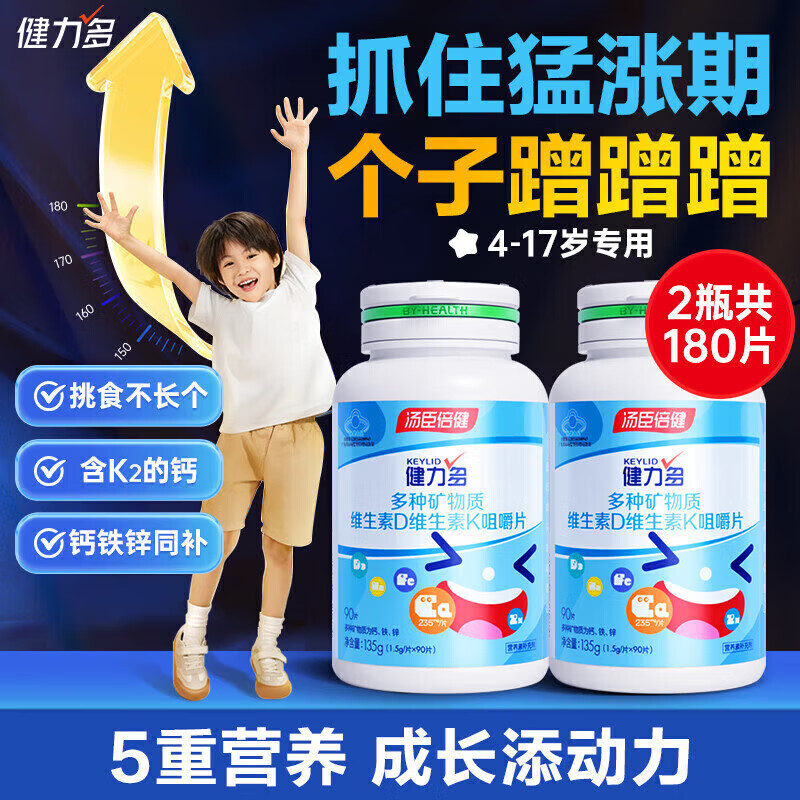 汤臣倍健(BYHEALTH)健力多钙片儿童青少年补钙4-17岁助成长期高钙铁锌维生素DK2钙片 [4-17岁专用]钙铁锌2大瓶共180