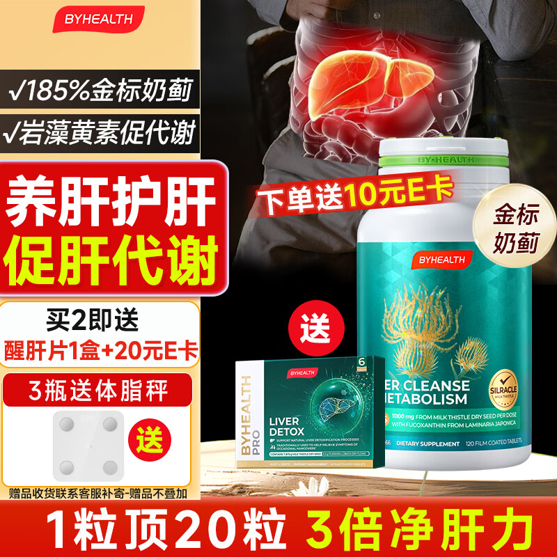 汤臣倍健(BYHEALTH)护肝片奶蓟草二代水飞蓟养肝净肝熬夜解酒脂肪肝转氨酶保健品 护肝PLUS升级版120粒【熬夜饮食油腻】