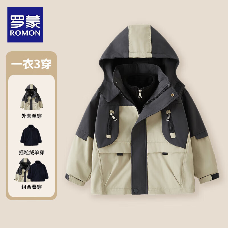 罗蒙(ROMON)仿雪貂绒男士加绒假两件毛衣2025秋冬新款衫保暖针织打底衫上衣 221驼色 加绒 3XL (建议体重155-170斤)