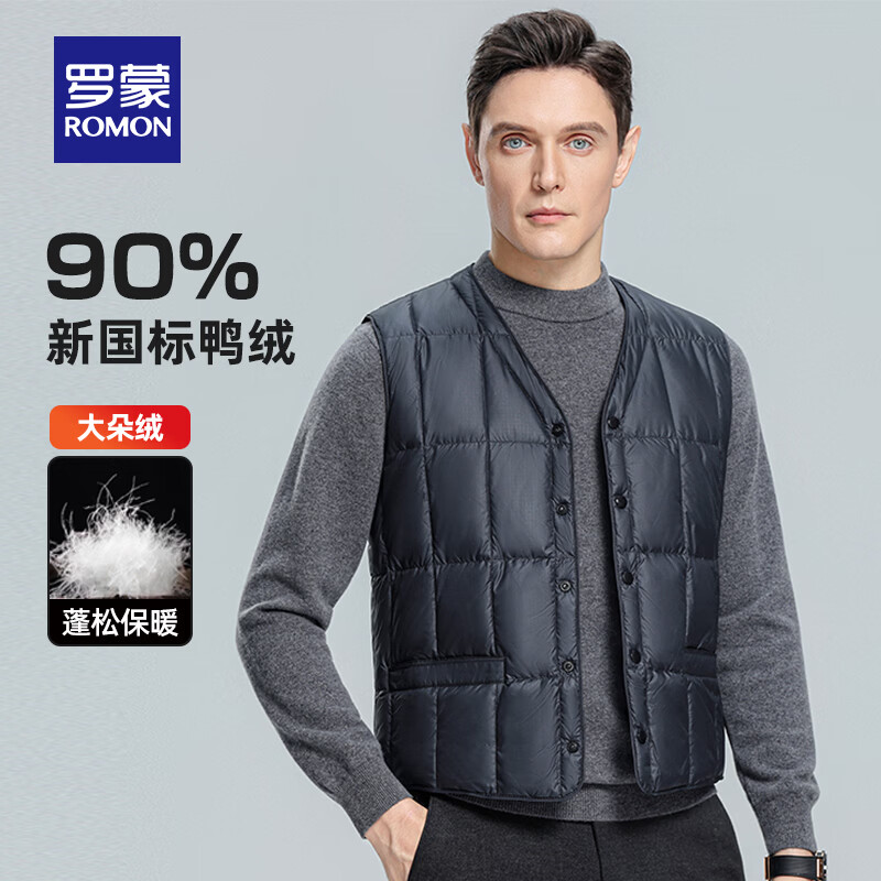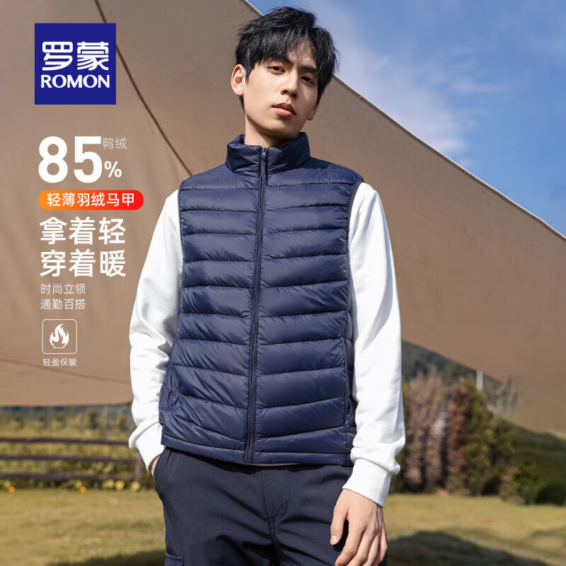 罗蒙(ROMON)羽绒马甲男2025秋冬新款轻薄爸爸装商务休闲羽绒内胆无袖外套男 藏青色 M (170) 【建议100-120斤】