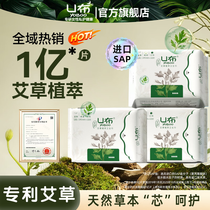 U布医护级艾草卫生巾益生菌夜用组合护垫加长185mm超薄迷你巾旗舰店 【护垫-超值装10包】 185mm 200片 超薄透气