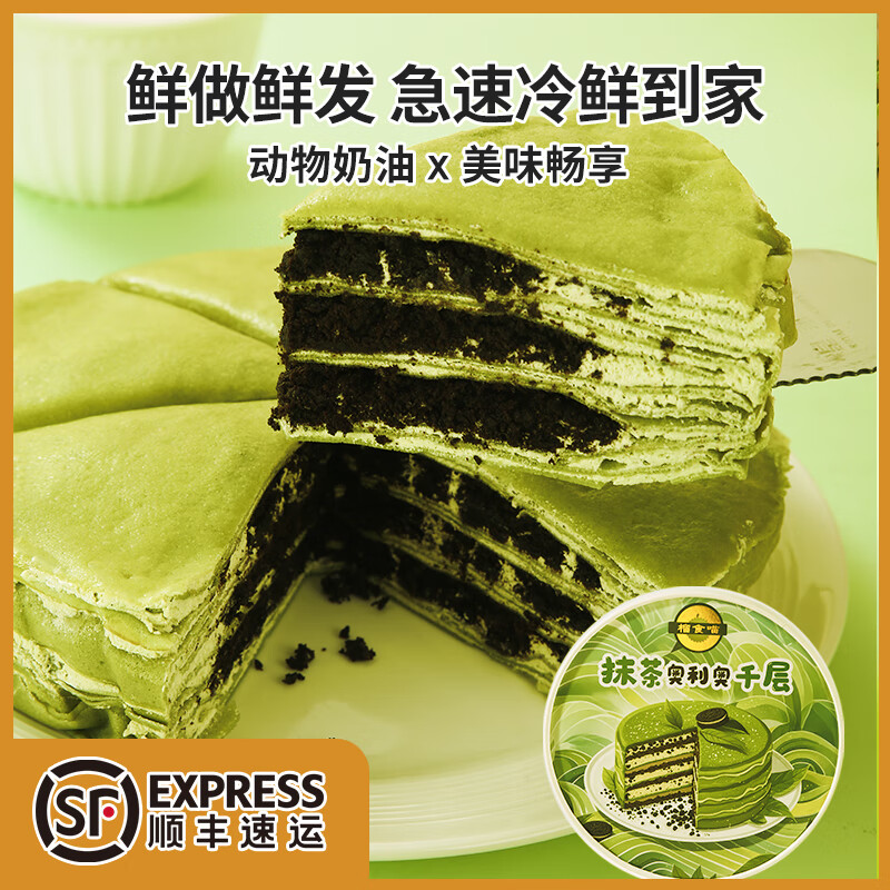 榴芒一刻抹茶千层蛋糕动物奶油420g*2