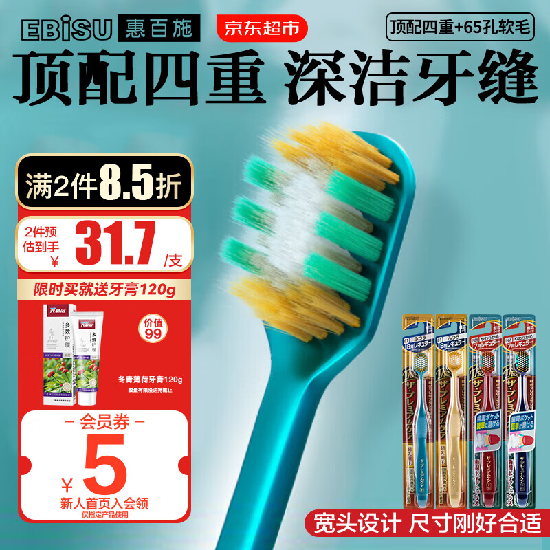 惠百施牙刷四重植毛 原装进口软毛护龈抗敏深层清洁 65孔成人手动宽头 【65孔+顶配四重】软毛组合 4支