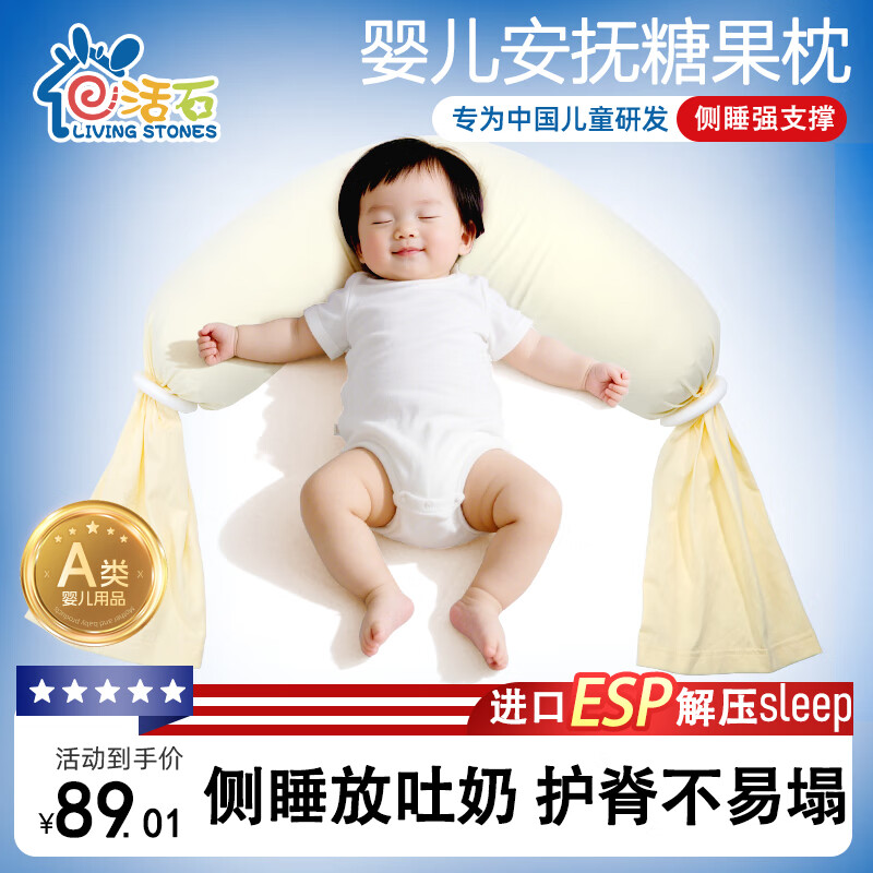 盟石(cute stone)糖果枕头婴儿侧睡安抚枕睡觉专用长条抱枕新生儿宝宝防惊跳神器 奶白 【进口EPS+A类+枕套可拆洗】 130*18cm 0-1-3岁小孩蒙氏多功能安抚枕