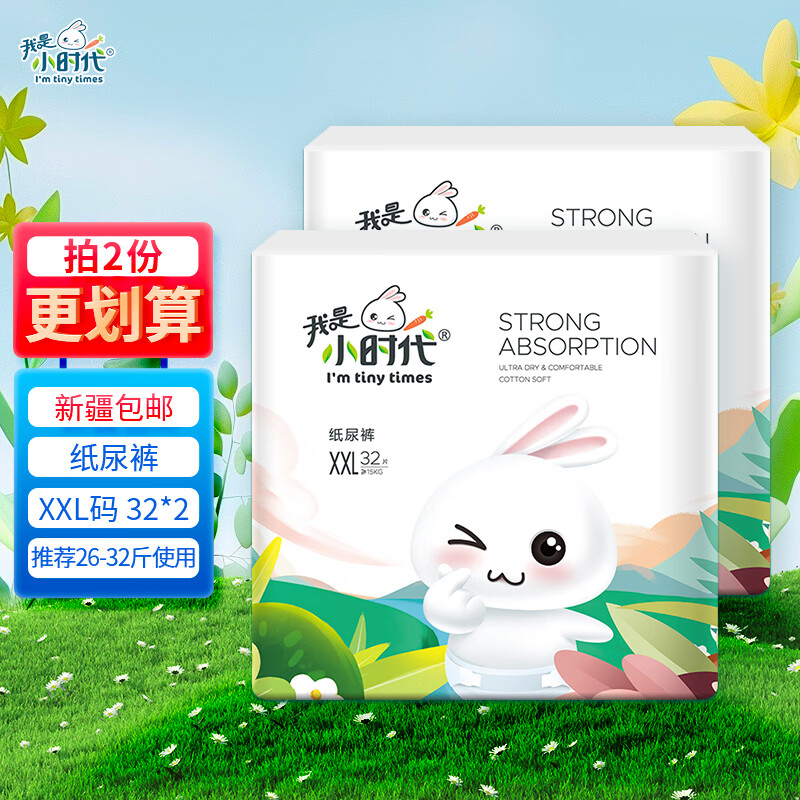 顽皮小河马【旗舰正品】河你相伴纸尿裤胖宝宝婴儿尿不湿拉拉裤干爽透气2包 3XL码拉拉裤24片/2包 体重≥18kg