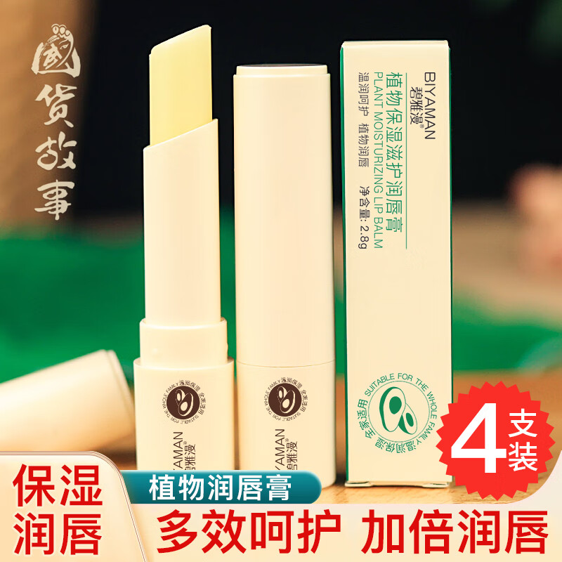 满39减30,到手价9.9元,碧雅漫保湿润唇膏 滋润保湿 防干裂 防唇脱皮 男女士通用 保湿润唇膏4支