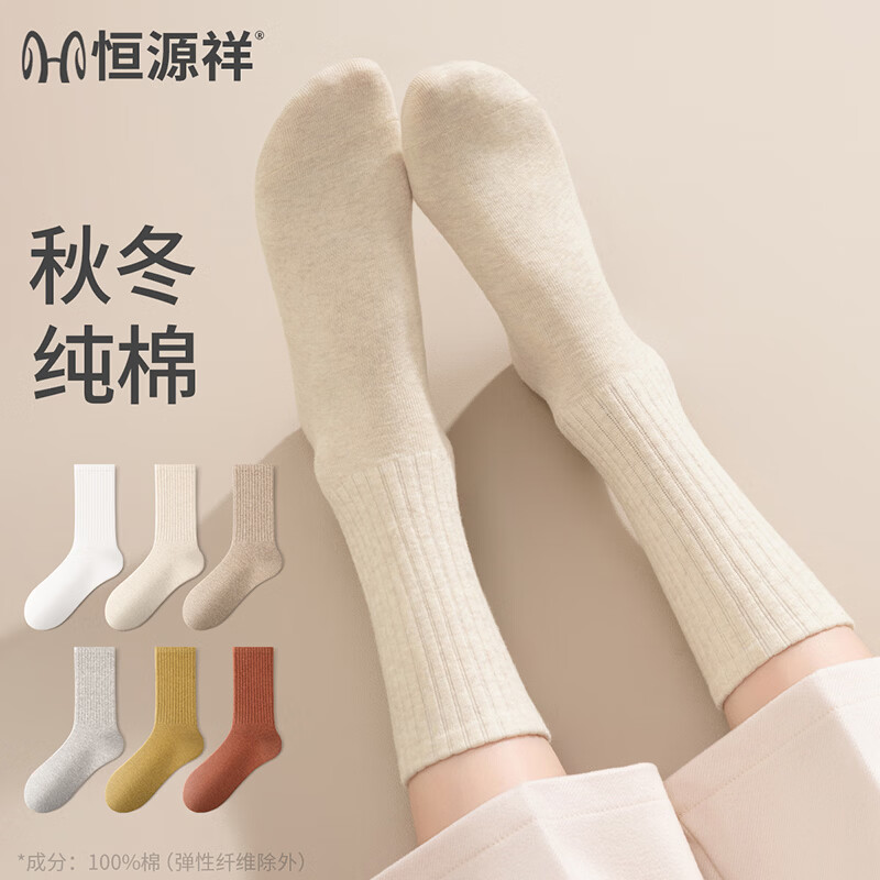 华婷露(Huatinglu)袜子女短袜中筒袜堆堆袜秋冬款防臭吸汗ins潮薄款浅口船袜休闲 中筒六双-卡其+砖红+黄+蓝+灰+黑华婷露(Huatinglu)袜子女短袜中筒袜堆堆袜  中筒6双