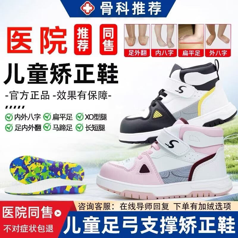 洛崽崽儿童内外八字脚矫正鞋垫扁平足定制XO型腿足外翻矫正小白鞋 黑白色(内八字) 矫正 扁平足/内八字 专用 38 码 内长约23.7CM/合适脚长22.7cm