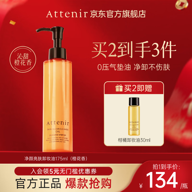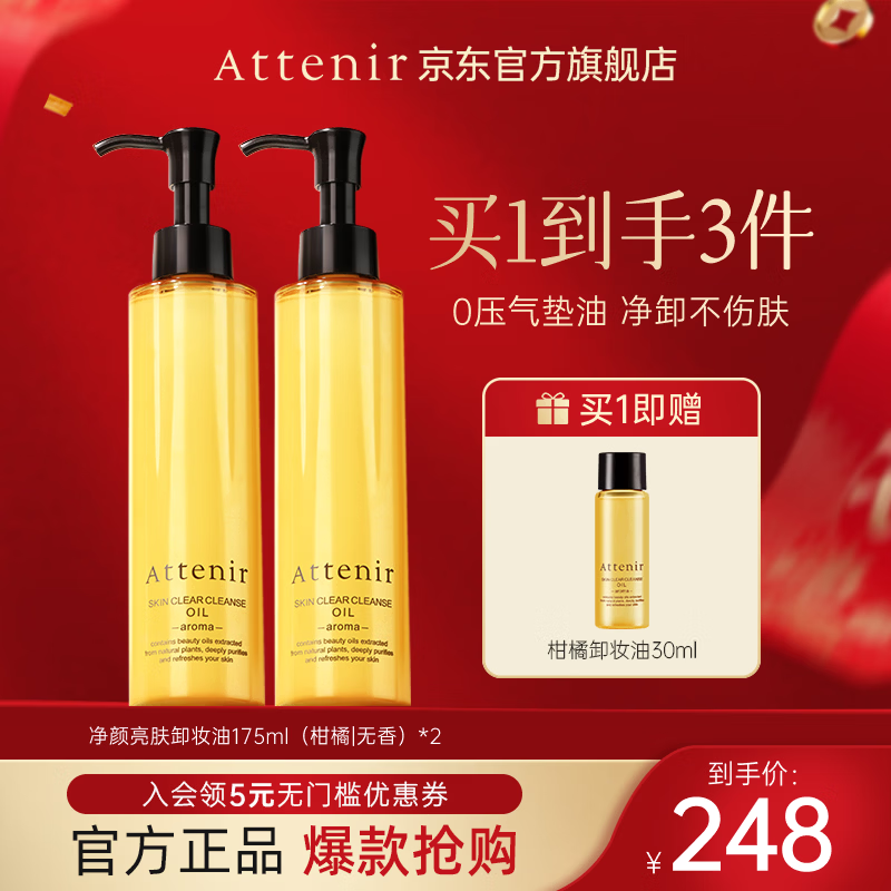 艾天然(Attenir)净颜亮肤卸妆油柑橘香175ml*2 囤货装升级款温和敏感肌乳化快卸妆 【爆款柑橘香】175ml*2