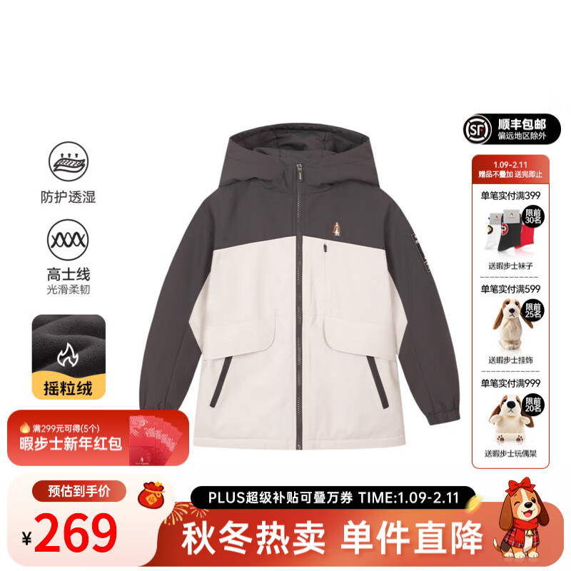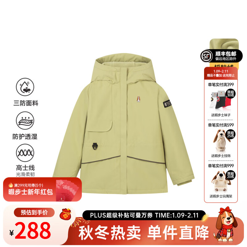 暇步士(Hush Puppies)童装儿童女大童2025冬季新款三防科技透气透湿舒适户外厚外套 青橄榄 120 cm