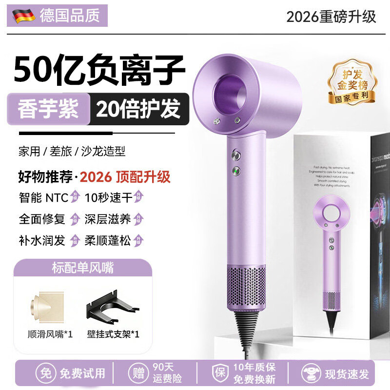 徕芬瑞悦吹风机家用静音负离子大功率不伤发吹风筒 大风高效速干无无叶电吹风 春日多巴胺配色 香芋紫-单风嘴【50亿水润负离子|高效护发】 新品首发 | 十年只换不修 | 顶配礼盒装
