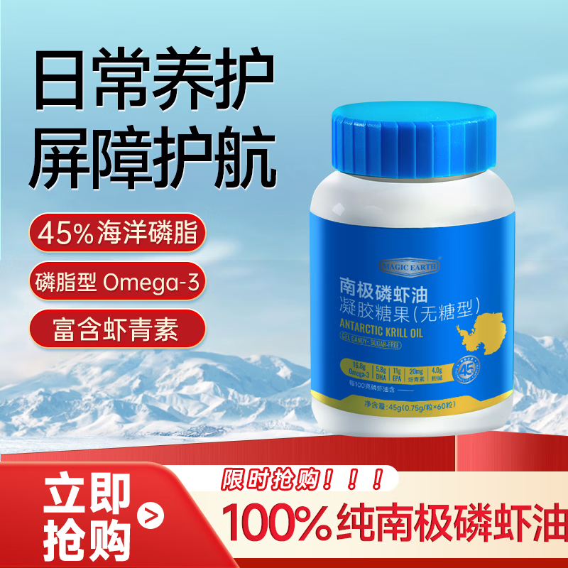 通用油软胶囊 中老年人血管辅助降血脂 深海鱼油omega-3高纯度 【高纯度南极磷虾油】买一送一到手4瓶 60粒*2瓶