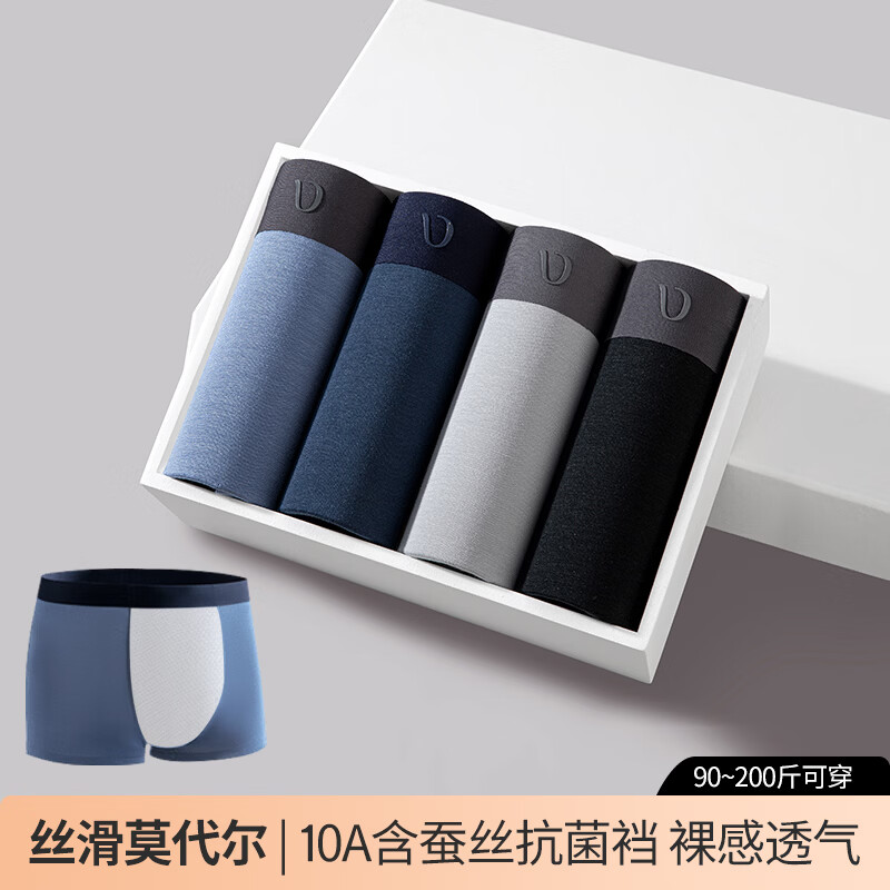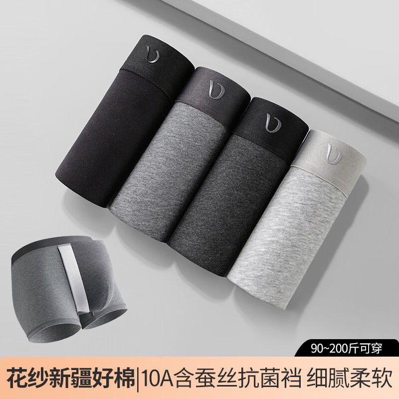 京东商城,品质无忧,万里挑一!雪中飞男士莫代尔内裤四角裤男生2026新款抗菌平角短裤大码裤男款裤衩 XZFZX-6640-赛代尔男士内裤-浅灰+灰绿+紫色 3条 XL 【建议105-125斤】