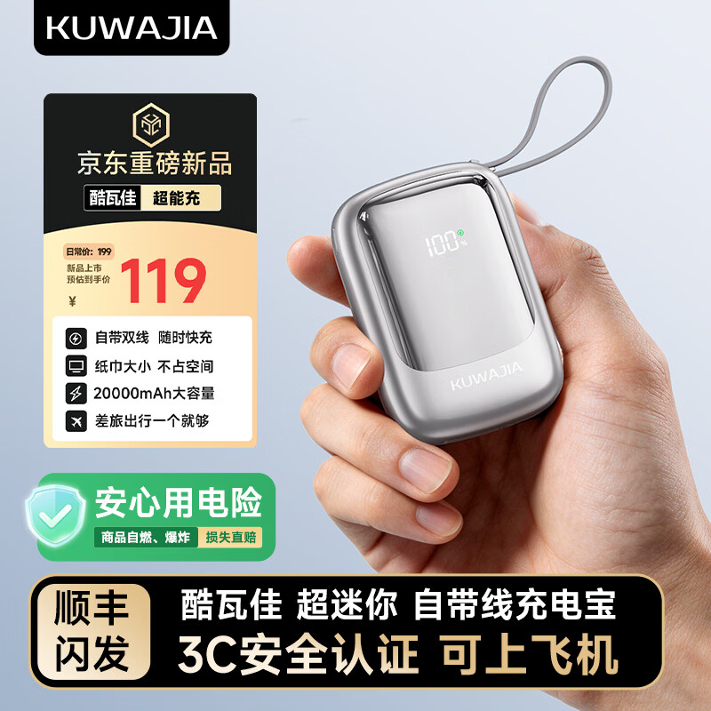 京东商城,品质无忧,万里挑一!用维(AWEI)充电宝10000毫安大容量新款能量柱超薄迷你小巧快充移动电源适用苹果【国家3C认证可上飞机】 粉色【双向22.5W能量柱】送C-C挂绳线 10000mAh