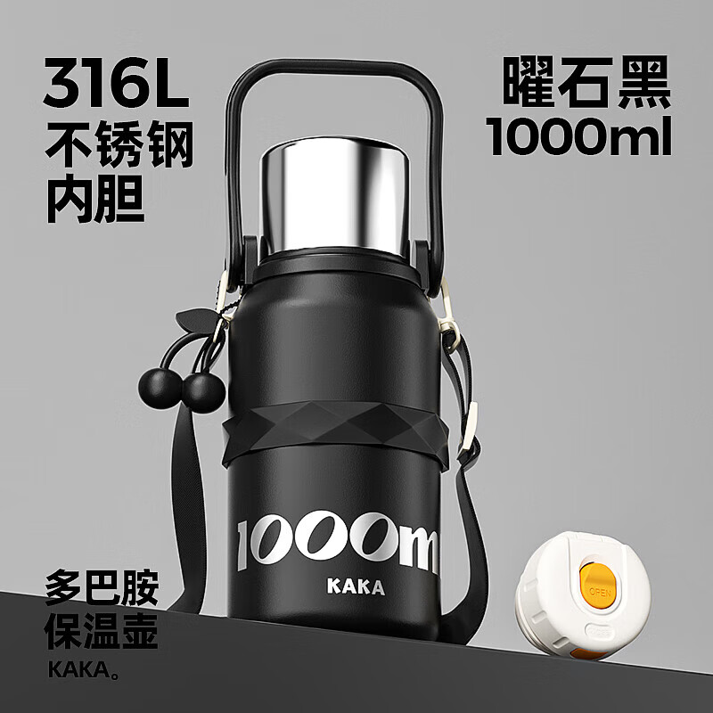皇家洛克316不锈钢大容量保温杯手提杯子双饮水杯 1000ML
