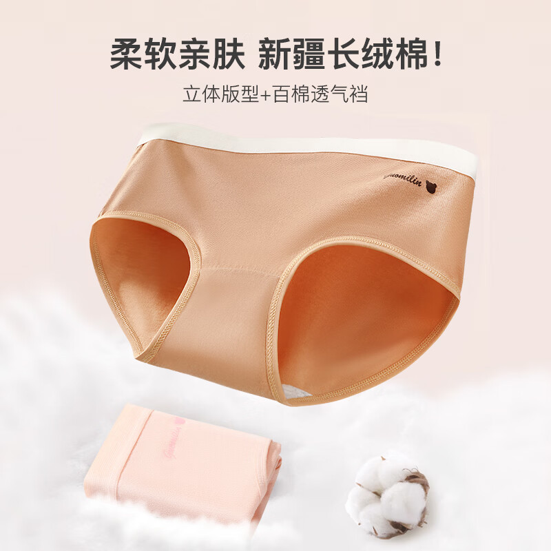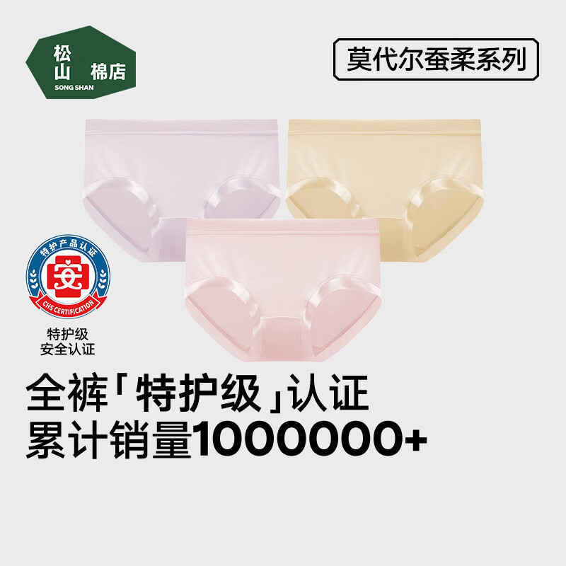 松山棉店特护级新疆棉女士内裤透气柔软全裤抑菌加长底裆弹力不夹臀3条装 淡粉色+清水蓝+草甸绿 3条 M (160) 推荐 95-110斤