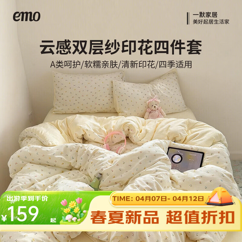 多兰诗(Duolanshi)春夏加厚磨毛四件套 ins四件套花卉田园风格床单被套四件套 鸟语花香M 2.0米 床单款 被套200*230 四件套