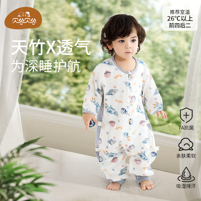 京东商城,品质无忧,万里挑一!LOVE TO dream防惊跳睡袋新生儿婴儿四季通用竹纤维襁褓式睡袋儿童投降式防踢被 灰白星月 竹纤维四季通用 M码:8-15斤(约3-6个月)