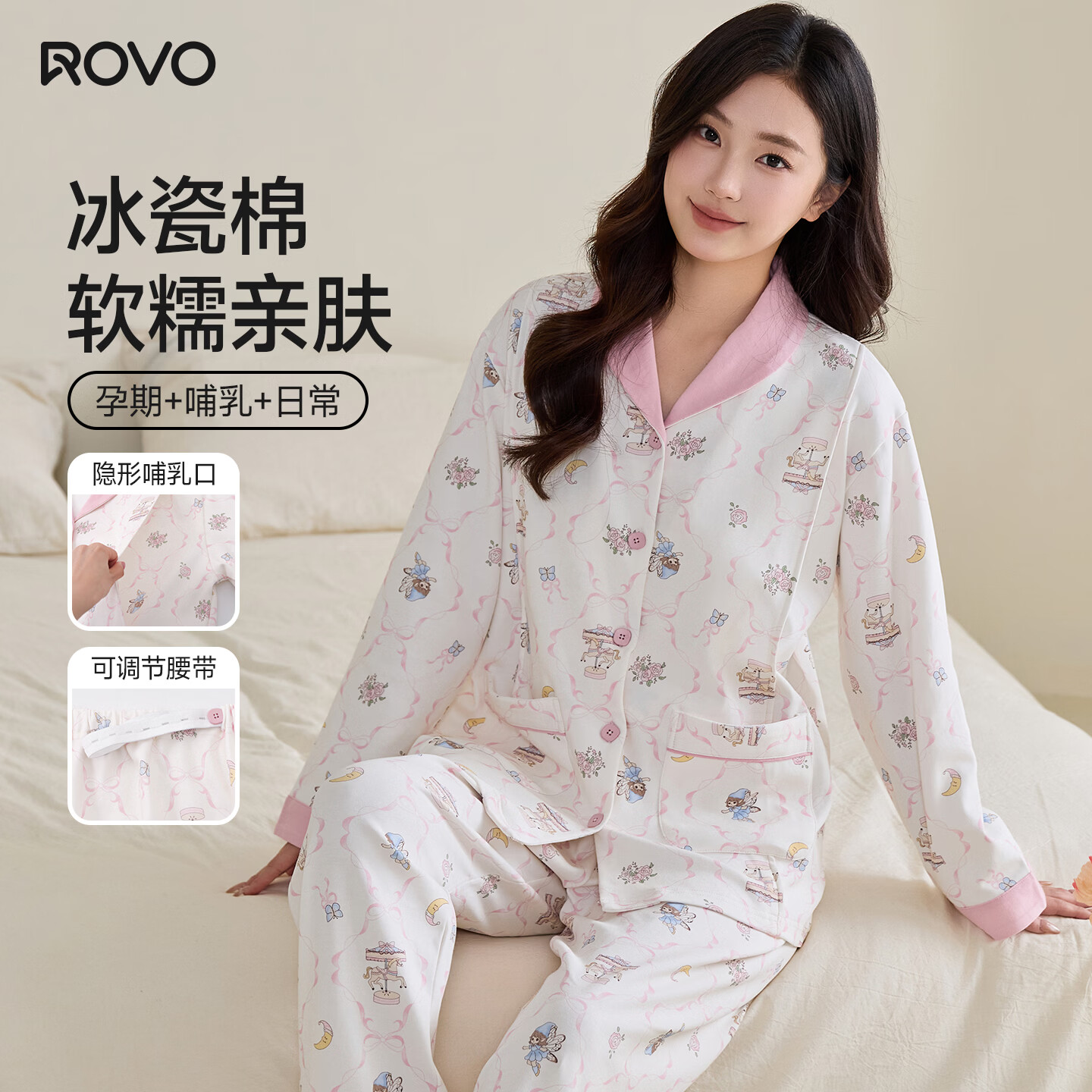 ARTFULMOM英国哺乳睡裙医院待产裙孕妇生产服进产房纯棉纱布长款月子服套装 粉色【套装】 XL【建议体重:120-140斤】
