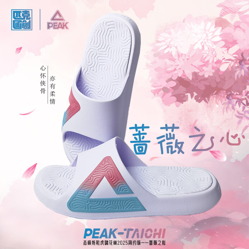 匹克(PEAK)态极拖鞋蔷薇之心运动拖鞋防滑沙滩鞋家居浴室凉拖男鞋虎啸花林 DL520557大白(蔷薇之心) 男款 44