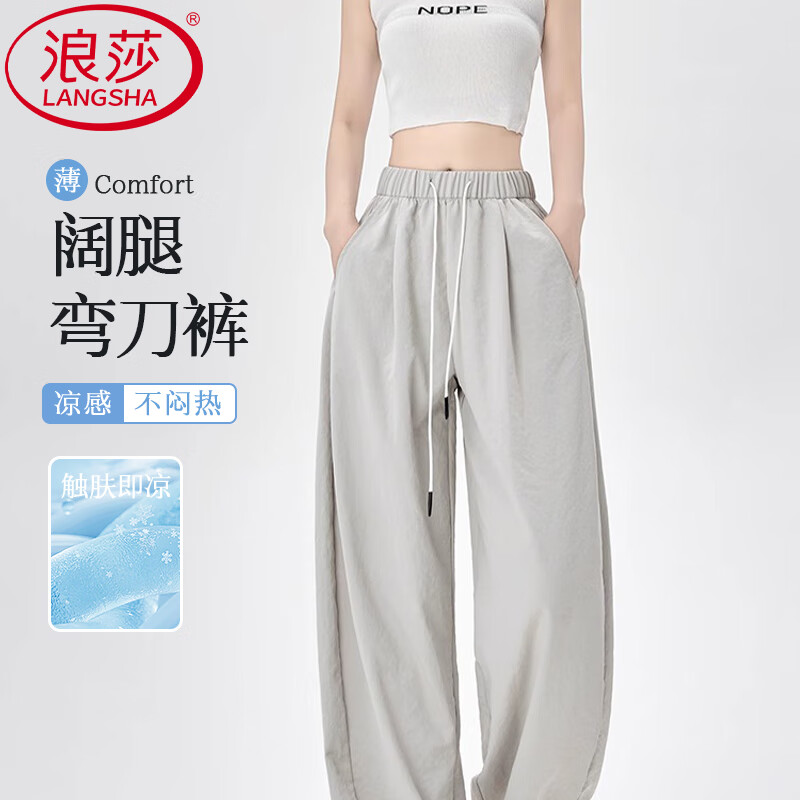 【JD旗舰店】浪莎 女生春季薄款奶芙西装阔腿裤 黑灰色