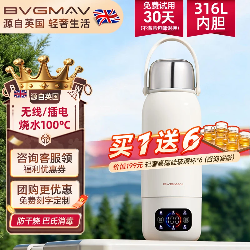 宝威玛(BVGMAV)便携式电热烧水壶无线加热烧水杯免插电可烧开水100度恒温保温一体户外旅行家用车载电煮杯泡奶机 0.55L 3c认证【无线+插电】满杯烧开100℃