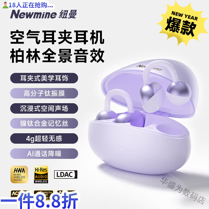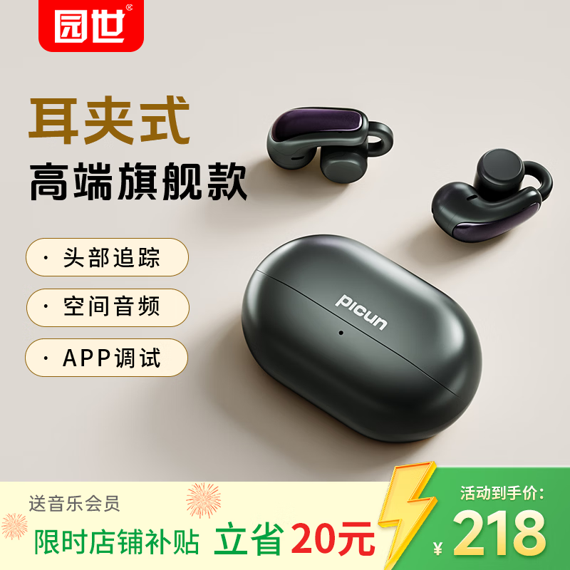 京东商城,品质无忧,万里挑一!园世W3 耳夹式蓝牙耳机 开放式不入耳无线耳机 跑步运动游戏通话降噪 沉浸空间音频丨智能防漏音丨W3
