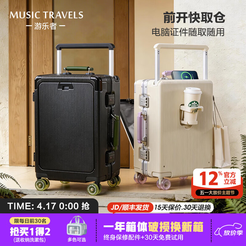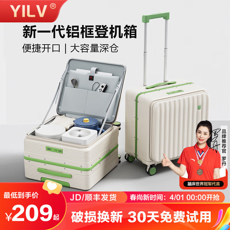 京东商城,品质无忧,万里挑一!ZORETTO2026年行李箱高颜值前开盖铝框拉杆箱24寸商务可登机学生旅行箱女 谷物白【高级铝框】 20英寸 登机箱【可放14寸笔记本】