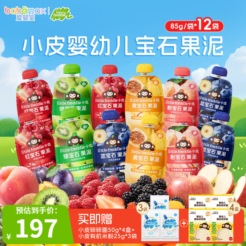 小皮(Little Freddie)果泥婴儿宝宝水果泥宝石果泥西梅泥 无添加糖盐果泥婴儿6个月以上 【重磅新品宝石果泥】多补铁尊享装 85g*11袋 6月+