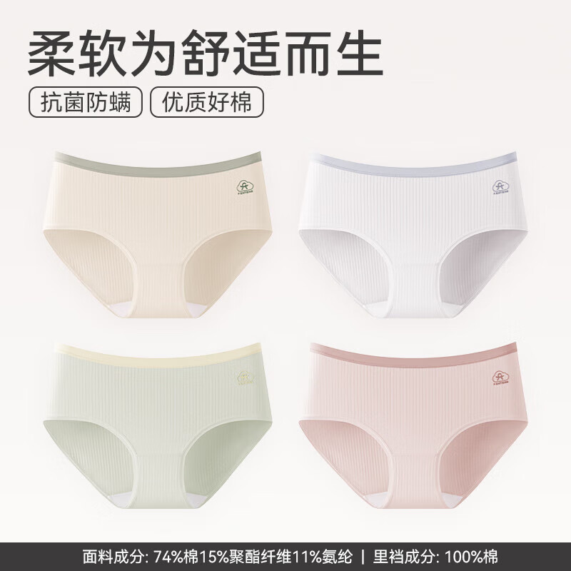 京东商城,品质无忧,万里挑一!caramella纯棉内裤女抗菌裆透气三角裤无痕甜美清新女士短裤 清新款混色5条装 均码 (适合90-125斤)