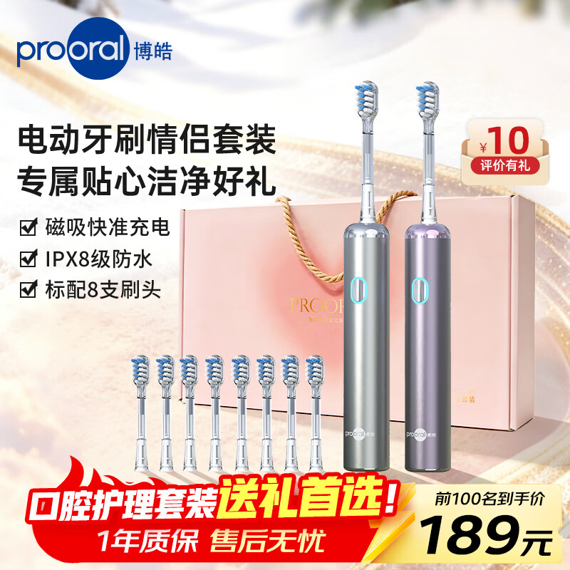 博皓(prooral)电动牙刷礼盒装成人扫振智能牙刷软毛护龈清洁全自动情侣款牙刷学生党生日情人节礼物送朋友 T42 天空蓝+2支刷头+酵素牙粉