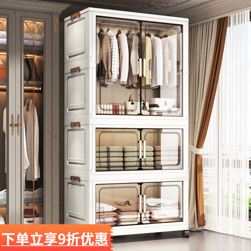 柏帝奇免安装儿童衣柜宝宝衣服收纳柜婴儿小衣橱多层塑料家用整理储物柜 1层挂衣柜+0层收纳箱【玉池槿】一层 小70CM【高清透平面板】加大加厚/厂家直销
