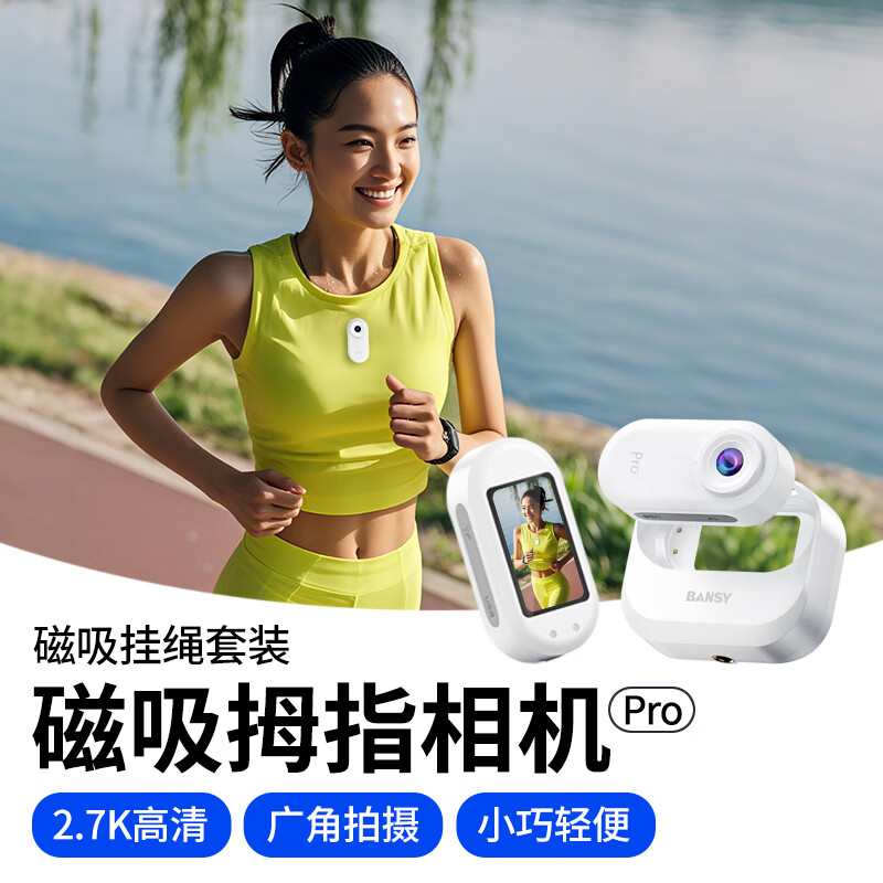 创意猪拇指相机vlog相机随身拍摄像机运动相机胸前记录仪儿童录像骑行旅游拍摄迷你挂脖式小型口袋相机 【磁吸挂绳+帽夹套装】磁吸充电仓丨读卡器 【灵动白Pro】2.7K超清丨120°广角 128GB内存卡