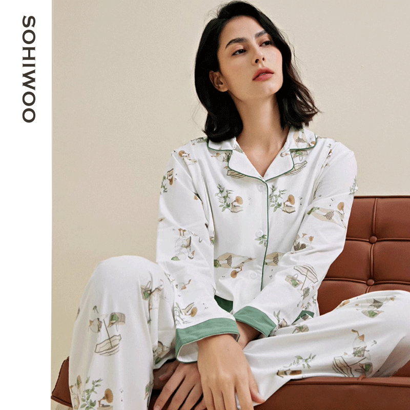 【49.9包邮】巴洛莲 秋冬法兰绒保暖可爱家居服套装